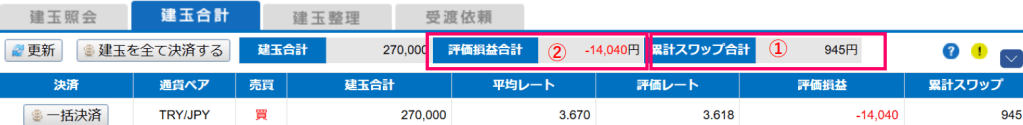 スワップポイントとしては、945円(①)加算されました!